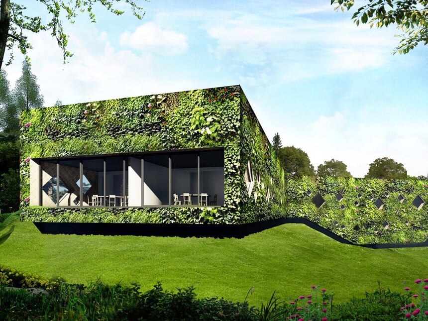 景观的整体设计理念以周边地区的生态环境为灵感。屋顶上种植着来自于附近山地的植物,包括爬藤和杜鹃等。