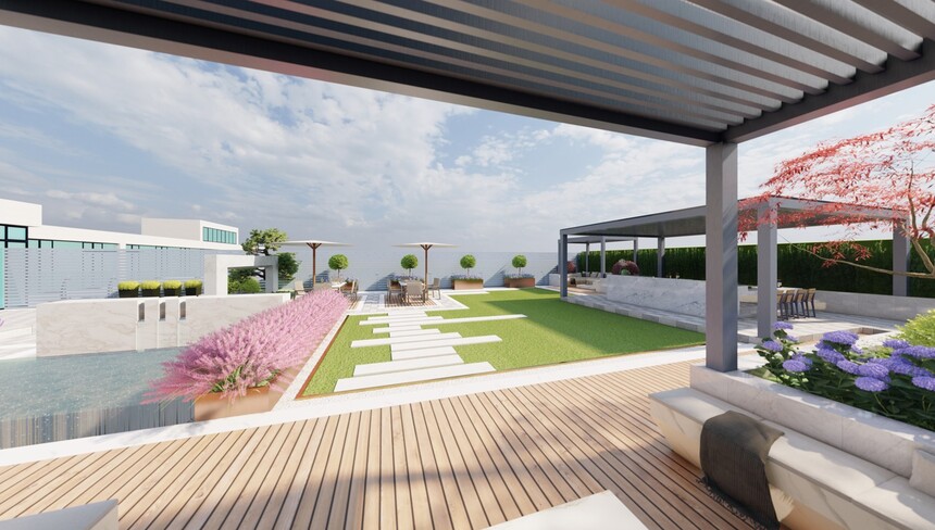 项目位置:上海 设计时间:2021年 设计单位:上海荷玛景观设计有限公司 施工单位:上海荷玛景观设计有限公司 景观没有明确的空间划分,通过室内外之间形成暧昧的流动感,营造出具有视觉与感馆冲击力的空间效果。